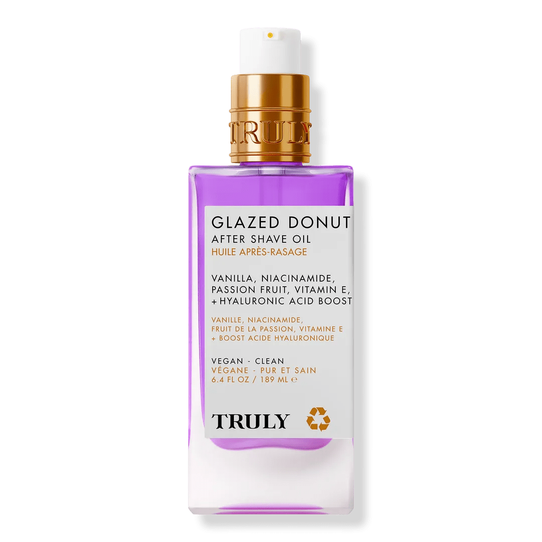 El aceite Soft Serve de Truly es un tratamiento para después del afeitado que sirve para hidratar, calmar la irritación y prevenir los vellos encarnados. Está formulado con ingredientes como péptidos, ácido hialurónico y extracto de fresa, que ayudan a suavizar la piel y a reducir el enrojecimiento después del afeitado.